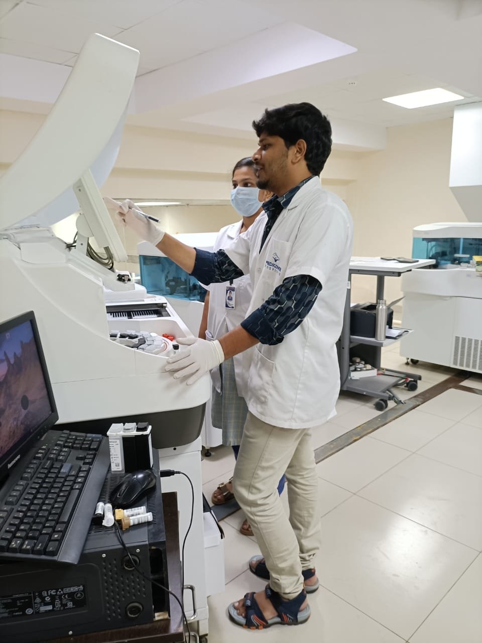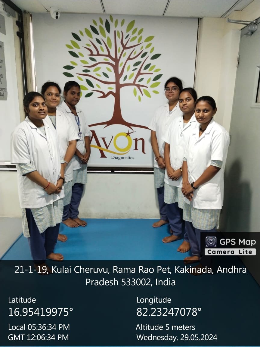 6th Semester Life Sciences students gaining hands-on experience at Satya Scans Diagnostics, Kakinada through a practical internship in diagnostic and laboratory sciences.