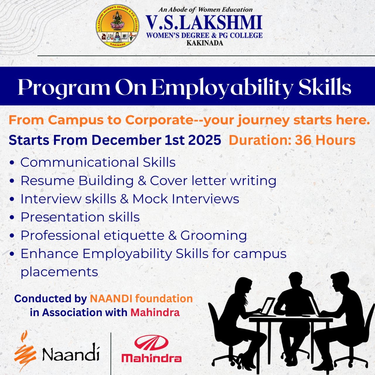 The 36-hour programme aims to strengthen employability skills and prepare students for successful campus placements. The programme is conducted by Naandi Foundation in association with Mahindra.